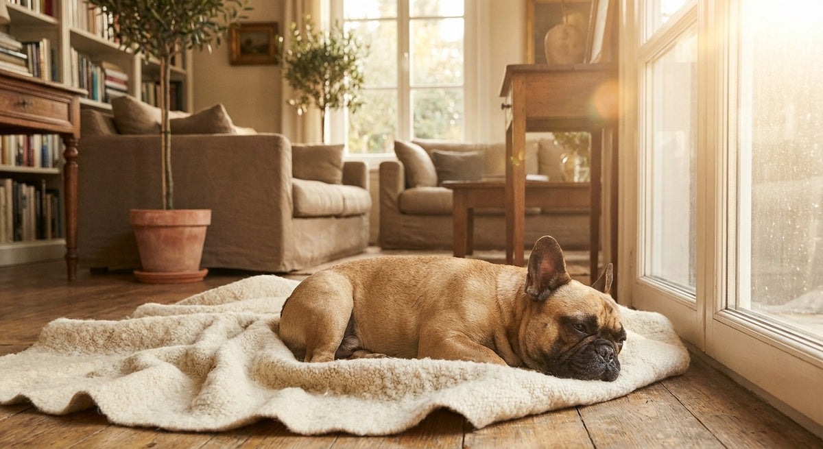 Kompakte Körpermasse. Frenchies haben ein hohes Gewicht (8-14 kg) bei kleiner Oberfläche. Physikalisch bedeutet das: Die Wärme, die der Körper produziert, hat weniger Fläche, um abgegeben zu werden. Ein Whippet mit 10 kg verteilt sein Gewicht auf eine deutlich größere Oberfläche und kühlt sich effizienter.