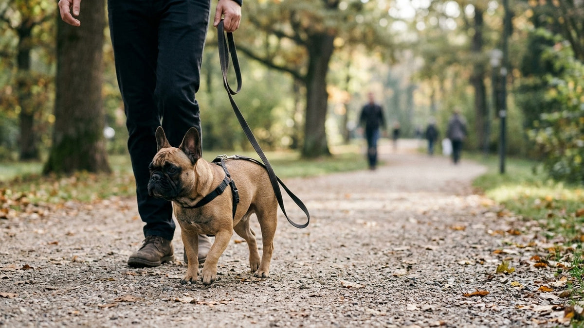 Bleib stehen, sobald die Leine straff wird. Geh erst weiter, wenn die Leine locker ist. Das dauert beim Frenchie länger als bei anderen Rassen, rechne mit 4-6 Wochen konsequentem Üben. Ein gut sitzendes Geschirr ist Pflicht.