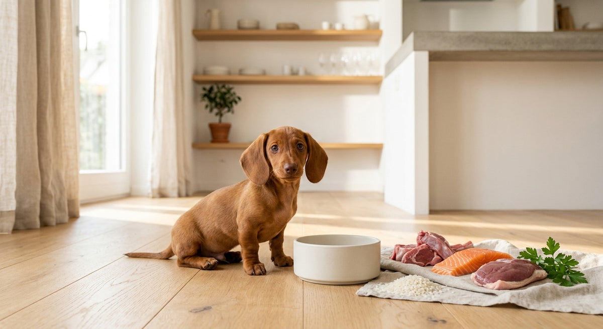 Zwischen der 8. und 16. Lebenswoche verdoppeln Dackelwelpen oft ihr Gewicht. Damit Knochen, Muskulatur und der berüchtigte lange Rücken stabil aufgebaut werden, braucht das Futter ein paar nicht verhandelbare Eckdaten: