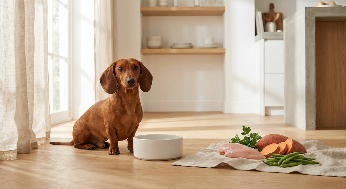 Die richtige Dackel-Ernährung ist gerade im Wachstum entscheidend. Zu viel Futter führt zu Übergewicht (schlecht für die Wirbelsäule), zu wenig bremst die Entwicklung.