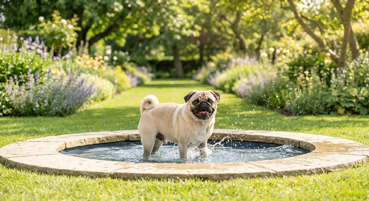 Wasser ist das beste Kühlmittel. Ein Hundepool im Garten oder auf dem Balkon ist eine einfache und günstige Lösung für heiße Tage.