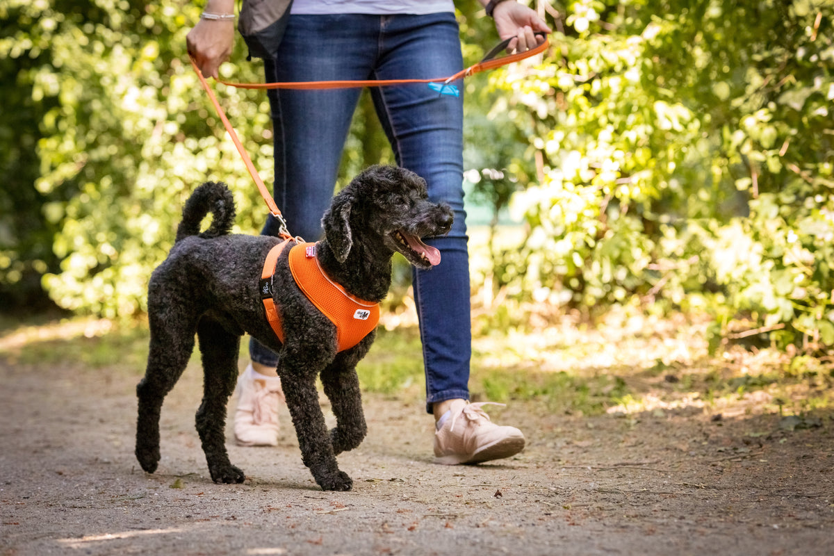 Neben gesundheitlichem Schutz verbessert ein Geschirr die Leinenführigkeit, weil der Zugpunkt tiefer liegt. Mit einem Front-Ring kannst du Ziehen sanft umlenken, was das Training erleichtert. Zudem bietet die optionale DogFinder™-ID einen integrierten Rückbring-Service, falls dein Hund einmal entläuft.