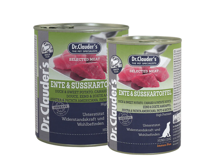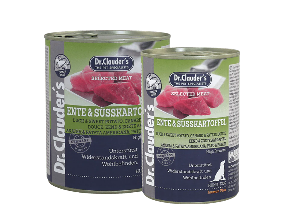 Dr. Clauder's Selected Meat Ente & Süßkartoffel 800g bietet Ihrem Hund ausgewählten Fleischgenuss, der schonend dampfgegart und aus 100% deklarierten Rohstoffen in Lebensmittelqualität hergestellt wird. Dieses hochwertige Futter enthält feinstes Entenfleisch kombiniert mit Süßkartoffeln, um einen puren und natürlichen Geschmack zu gewährleisten. Dr. Clauder's steht für eine artgerechte und gesunde Fütterung, made in Germany, der Sie vertrauen können.
