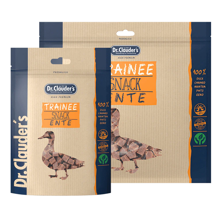 Verwöhnen Sie Ihre Hunde und Katzen mit Dr.Clauder's Trainee Snacks Entenfleisch – ein köstlicher und gesunder Leckerbissen aus 95% hochwertigem Entenfleisch. Durch die schonende Dampftrocknung bleibt das einzigartige Aroma des Fleisches erhalten. Mit Inulin (FOS) und wertvollen Mineralstoffen angereichert, fördern diese Snacks die Verdauung und das allgemeine Wohlbefinden Ihrer Vierbeiner.