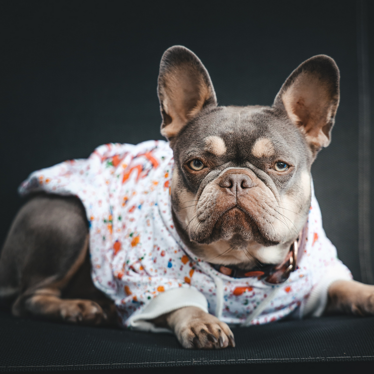 Der Hundepullover ist besonders für französische Bulldoggen, kleinere Vierbeiner mit wenig Fell oder auch Welpen geeignet. Aus feinstem Material ist dieser Hoodie der aktuellen Sommer Kollektion etwas dünner und perfekt für die aktuellen Temperaturen.